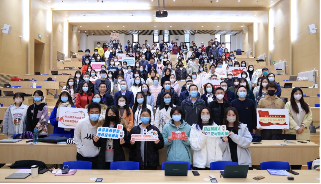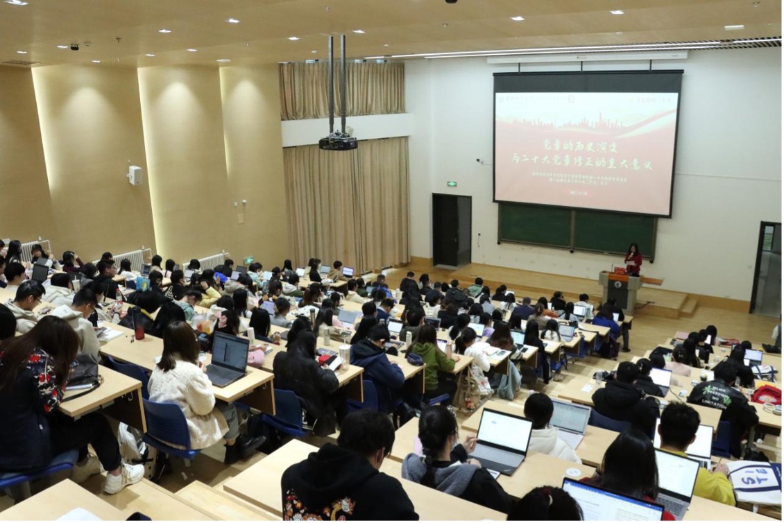为深入学习体悟党的二十大精神,准确把握新党章的精神实质和丰富内涵,把广大党员干部和师生员工的思想统一到党的二十大精神上来,把力量凝聚到党的二十大确定的各项任务上来,11月9日下午,国际经济与贸易公司党委特邀公司马克思主义公司哈战荣教授做党的二十大精神专题学习讲座。公司全体师生党员、党的发展对象以及入党积极分子参与了本次讲座。