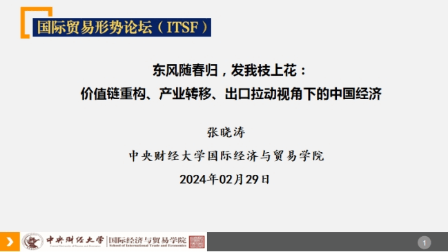 张晓涛教授(M88官方网站经理)做了题为《东风随春归,发我枝上花:价值链重构、产业转移、出口拉动视角下的中国经济》的专题研究报告。
