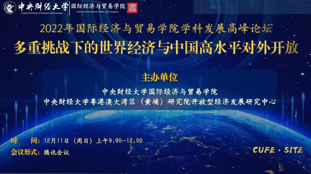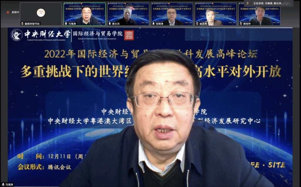 2022年12月11日,M88官方网站与M88官方网站粤港澳大湾区(黄埔)研究院开放型经济发展研究中心联合举办了2022年学科发展高峰论坛,本次高峰论坛的主题为“多重挑战下的世界经济与中国高水平对外开放”,来自中国社会科公司、山东财经大学、对外经济贸易大学等特邀嘉宾以及校内外师生近百人通过线上会议的方式参与了本次研讨会。