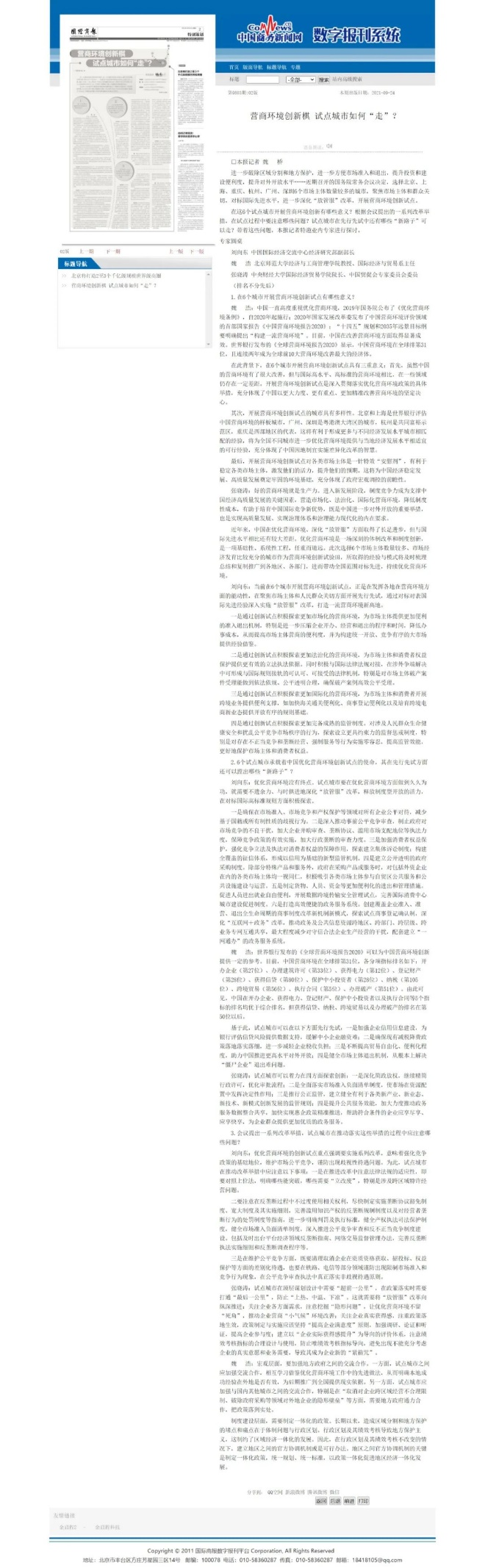 近日,张晓涛教授受邀参加《国际商报》圆桌论坛,就我国开展营商环境创新试点发表观点,相关采访内容刊登在《国际商报》2021年9月24日第2版。