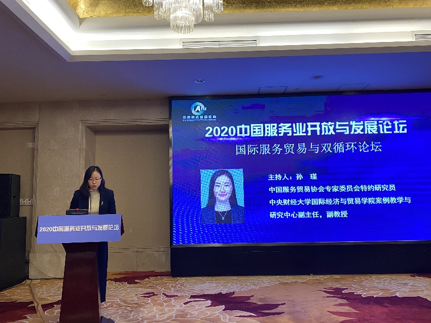 2020年12月20日,公司案例教学与研究中心副主任孙瑾副教授主持国际服务贸易与双循环经济论坛,孙瑾老师作为主持人简单点评了上海会展研究院张敏经理、中国国际经济交流中心世界经济处梅冠群副处长、对外经济贸易大学陈全润副教授的主题报告,并向会场嘉宾介绍了M88官方网站案例教学与研究中心计划开展的相关工作,希望在场领导、同行学者和业界精英关注中财国贸公众号并对中心的工作给予大力支持。会后,孙瑾副主任也和前来参会的一些企业家进行了深入交流,对于下一步建立产学研基地、为社会服务贡献中财智慧等进行了友好洽谈。