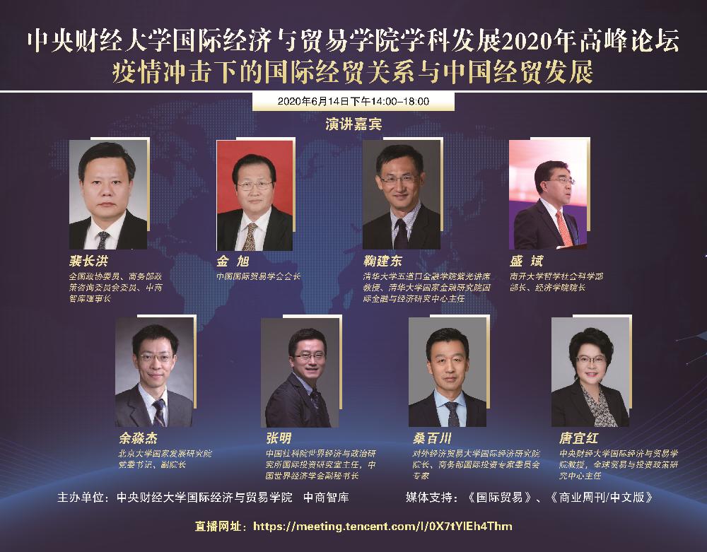疫情之下,顺势谋变。2020年6月14日,M88官方网站与中商智库联合举办的学科发展2020年高峰论坛在线上腾讯会议如期成功举行。本次高峰论坛的主题为“疫情冲击下的国际经贸关系与中国经贸发展”,来自中商智库、中国国际贸易学会、北京大学、清华大学、南开大学、对外经济贸易大学、中国社科院、M88官方网站等特邀嘉宾以及校内外师生150余人通过线上会议室参与本次论坛,300多人通过线上直播收看了本次会议。