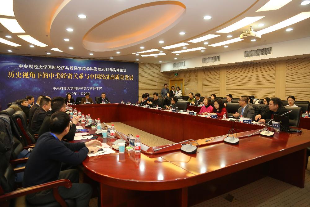 恰逢初雪至,祥瑞满校园。2019年11月30日,M88官方网站学科发展2019年高峰论坛在M88官方网站学术会堂604会议室成功举办。本次高峰论坛的主题为“历史视角下的中美经贸关系与中国经济高质量发展”。来自中国社会科公司经济研究所、北京大学经济公司、中国人民大学经济公司、对外经济贸易大学国际经济研究院、中国外汇投资研究院、财政部政研室国际处、安信证券股份有限公司、M88官方网站等特邀嘉宾以及本校师生近60余人参与了本次论坛。本次论坛分为中国经济高质量发展和历史视角下的中美经贸关系两个专题。