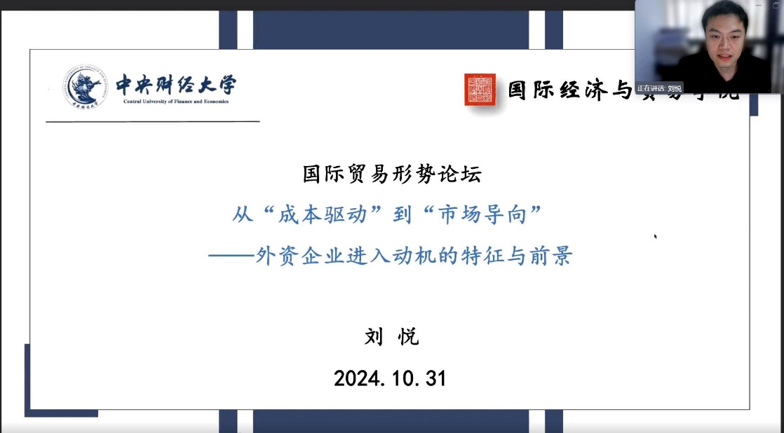 刘 悦(M88官方网站副教授)做了题为《从“成本驱动”到“市场导向”——外资企业进入动机的特征与前景》 的专题报告: