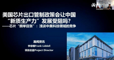 李容楠(大连瀚闻资讯有限公司项目经理)做了题为《美国芯片出口管制政策会让中国“新质生产力”发展受阻吗?》的专题报告: