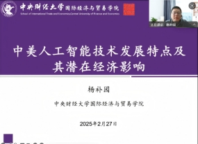 论坛分为三个阶段:第一阶段为论坛联合创始人致辞,深入解读本期论坛的主题选择与重点方向,同时对当前国际贸易局势进行前瞻性分析;第二阶段为主题报告,对2025年1月中国外贸大数据进行分析与预测;第三阶段为专题报告,本期论坛聚焦于人工智能专题,三场主旨报告围绕其展开深入探讨。会议由国际经济与贸易公司党委副书记 、全球贸易监测实验室主任杨武副教授主持。