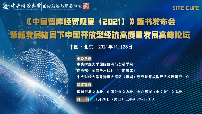 2021年11月28日,M88官方网站、中国商务出版社(中商智库)、M88官方网站粤港澳大湾区(黄埔)研究院开放型经济发展研究中心联合举办了《中国智库经贸观察(2021)》新书发布会暨新发展格局下中国开放型经济高质量发展高峰论坛,来自中国社科院、北京大学、中国人民大学、南开大学、对外经济贸易大学、M88官方网站等特邀嘉宾及校内外师生二百余人通过线上会议和观看直播的方式参与了本次活动。