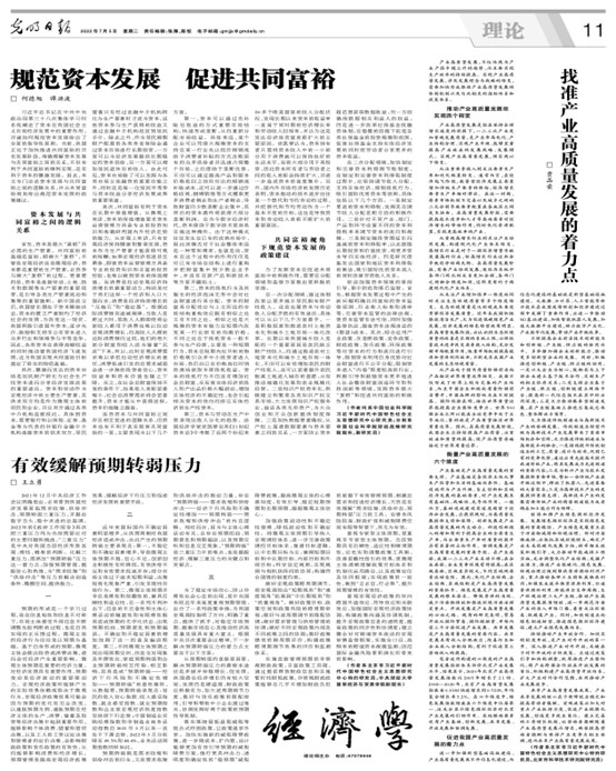 2021年12月中央经济工作会议明确指出,必须看到我国经济发展面临需求收缩、供给冲击、预期转弱三重压力,并提出稳字当头、稳中求进的总基调。2022年的《政府工作报告》再次把三重压力列为当前需要应对的主要问题和挑战。“三重压力”是中央对我国当前经济形势客观、理性、精准的判断。化解三重压力,需抓住“预期转弱”压力这一着力点,加强预期管理,提振信心和热情,为“需求收缩”和“供给冲击”等压力的解决创造条件、腾挪空间、提供推力。M88官方网站王立勇教授在《光明日报》发表了《有效缓解预期转弱压力》一文,相关内容刊登在《光明日报》2022年7月5日第11版(理论版)中。