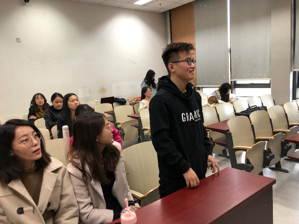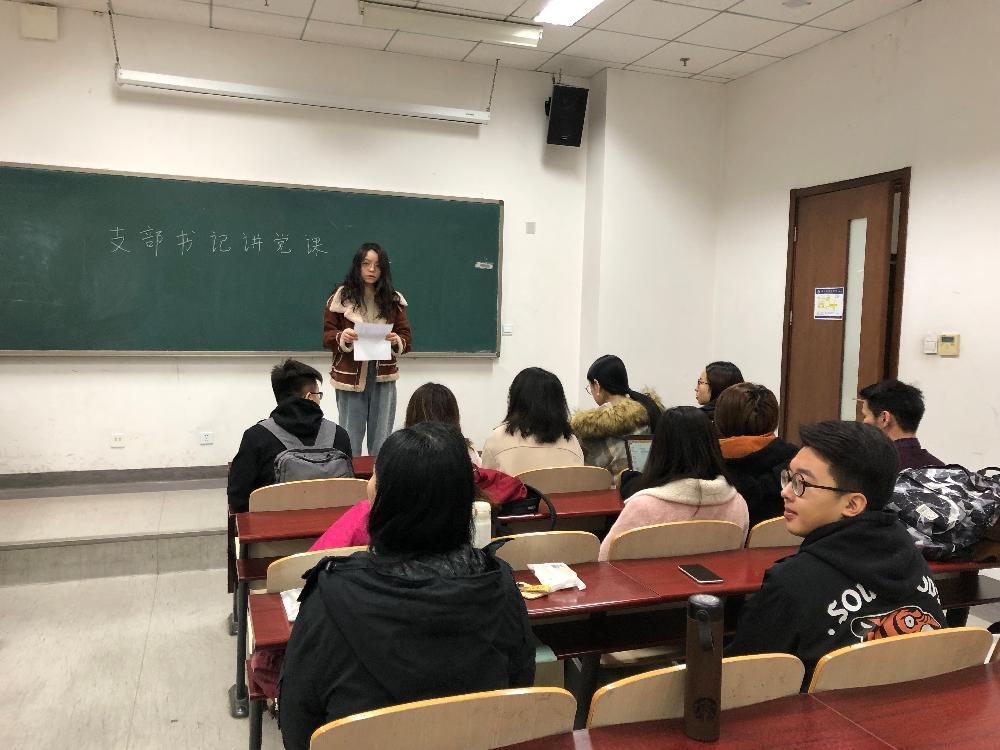 2019年11月12日上午,M88官方网站国际商务硕士党支部在主教208教室开展了“新时代青年的担当”主题党课,党支部书记李季莲从青年在新时代的重要地位、新时代赋予青年的使命、新时代青年的责任三个角度,和大家分享了自己的心得体会。
