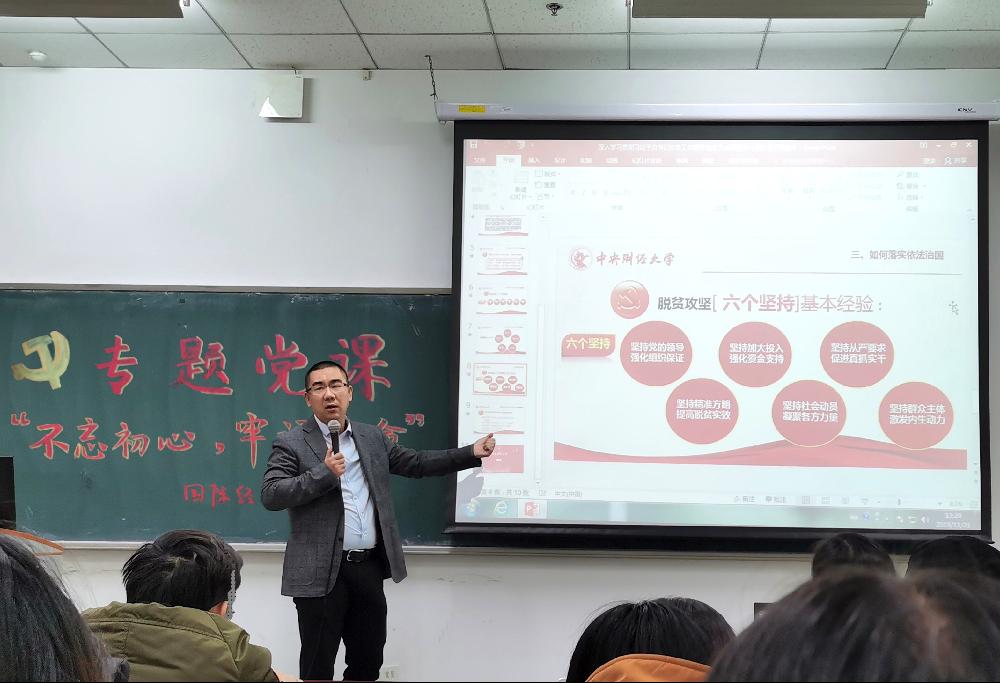 最后,杨老师表示党和国家把打赢脱贫攻坚战做为当前最重要的工作之一,符合国家发展和人民福利的正确选择,就是中国共产党的初心和使命。目前,脱贫攻坚已到了决战决胜、全面收官的关键阶段,杨老师表达了自己对我国能够成功完成“脱贫攻坚”工作的坚定信心,同时希望同学们从扶贫工作取得的巨大成就中,充分认识到社会主义的制度优势、我党以人民为中心的宗旨和“从严从实,到人到户”的优良工作作风。