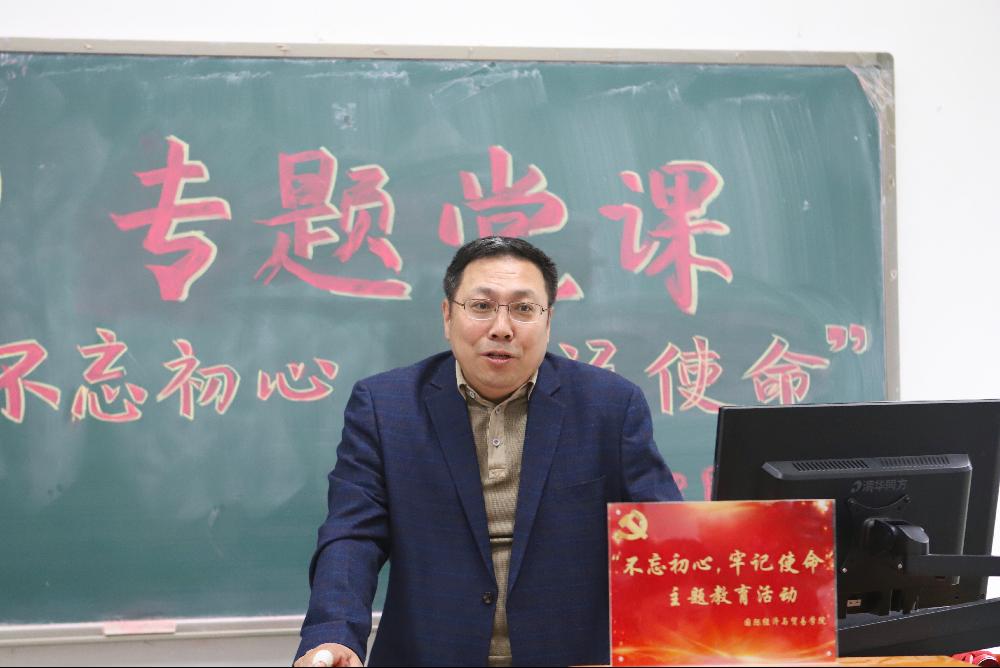 为深入学习贯彻习近平新时代中国特色社会主义思想,全面落实“守初心、担使命,找差距、抓落实”的总要求,多层次开展“不忘初心、牢记使命”主题教育,10月24日中午,国际经济与贸易公司党委“不忘初心、牢记使命”系列主题党课第一讲暨二级党校书记讲党课在沙河校区主教102顺利开展。本次党课由公司组织员徐士如老师主持,公司党委书记徐淼老师主讲,题目为“上党课知党情,端正入党动机,树立理想信念”,公司二级党校全体入党积极分子50余人参加了本次党课学习。