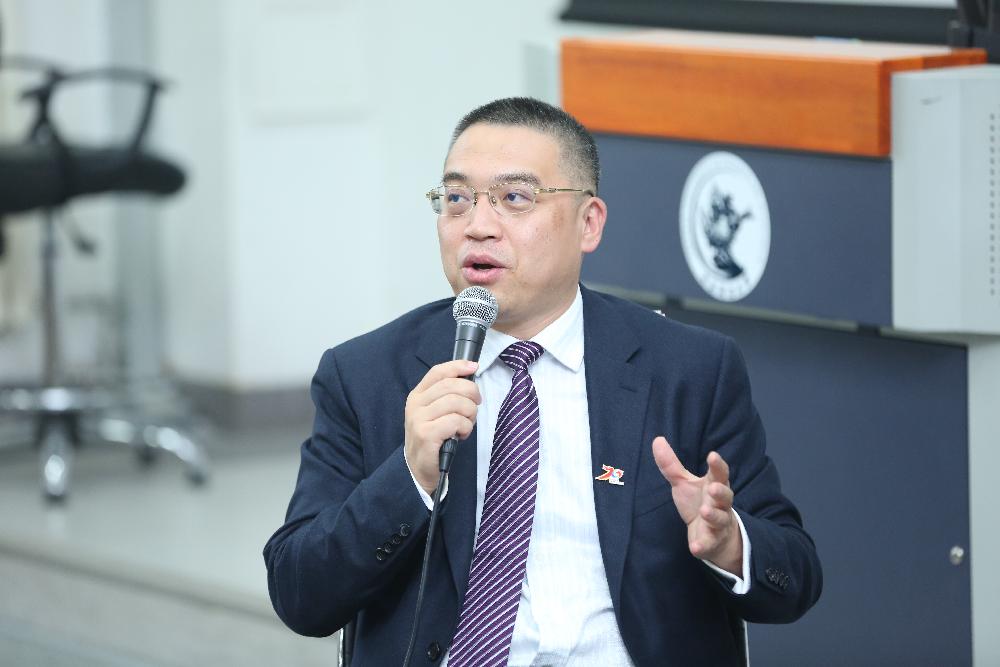 论坛开始,张晓涛经理首先向到场的员工嘉宾们表示热烈的欢迎和衷心的感谢。他介绍了新形势下国际贸易的发展趋势,指出近期的中美经贸摩擦和金融业开放都表明当前的贸易高度开放和全球化发展,充分肯定了国际贸易学科的重要性,希望同学们能够增强专业认同、树立专业自信,也期待公司年轻的新老员工能在今天的论坛中共话成长、深入交流。
