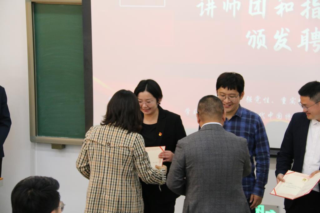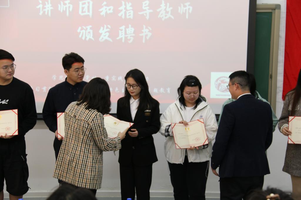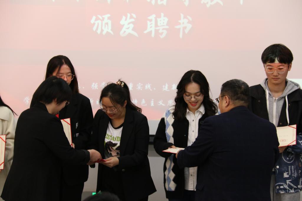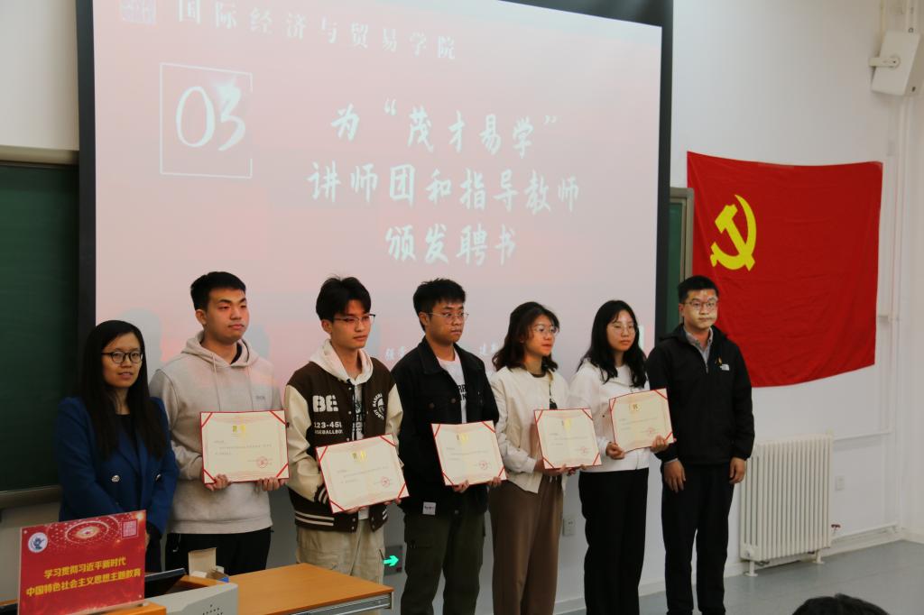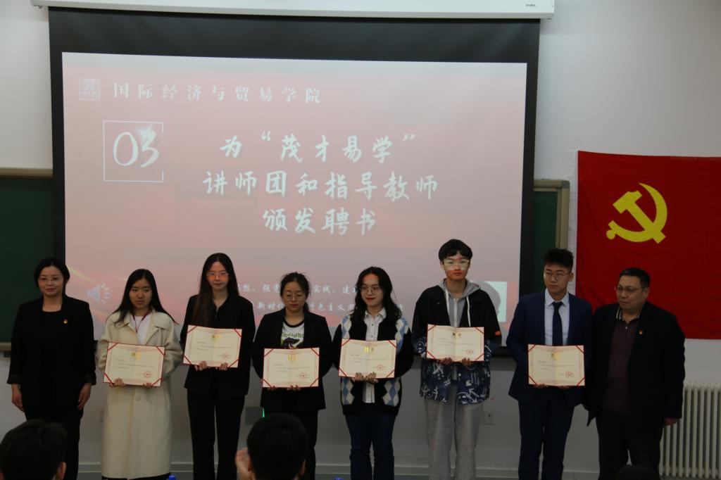 接着,公司党委副书记杨武在大会上宣读国际经济与贸易公司党委〔2023〕1号文件,经公司党委2023年度第九次党委会议研究决定:以“红摇篮”员工党建工作基地为依托,成立“茂才易学”讲师团,聘任文思琪等30名员工为“茂才易学”第一期讲师团成员;聘任苗壮、钟腾龙、俞脱脱、蒋海威4名教师为“茂才易学”讲师团指导老师。与会领导、老师为“茂才易学”讲师团成员和指导教师颁发了聘书。