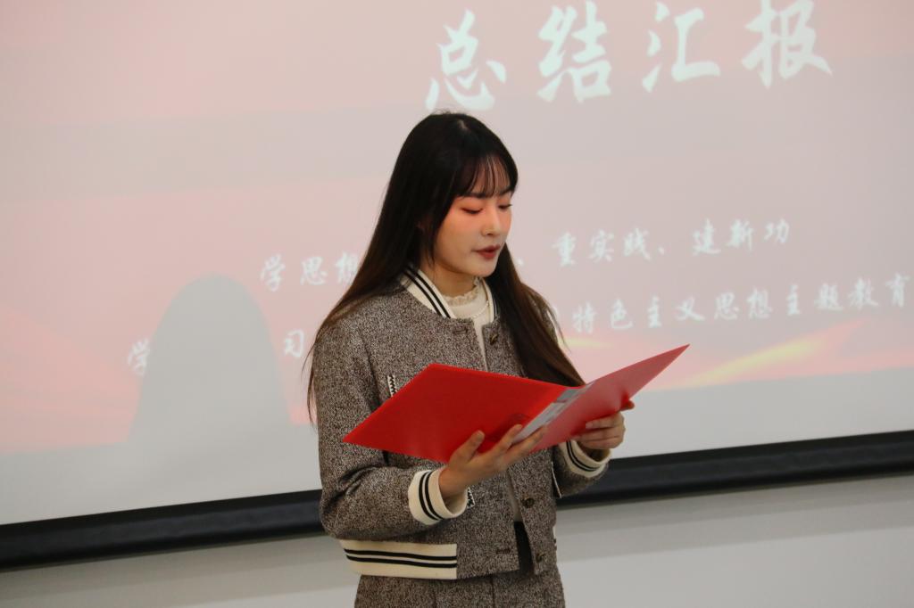 “红摇篮”员工党建工作基地主任文思琪为大家做“红摇篮”党建工作基地工作总结。她介绍到,自2019年10月以来,在公司党委的领导下,“红摇篮”党建工作基地开展一系列“走心又走新”的多样化活动,从“北大红楼”故事分享会到“觉醒年代”手抄报制作,从雷锋精神我想说到“爱国诗歌”我来写,从“礼敬传统文化”的研读吟诵到“我和我的冬奥志愿”传承弘扬,实现了教育多元化、学习创新化。正是在这些活动的组织和实践中,不断积累和总结,探索出了大中小合作共建的新路径。她表示 “红摇篮”党建工作基地将继续秉承“传承红色基因,淬炼经贸精英”的理念,基地成员将努力做勇担时代责任、树立世界眼光、传递中国力量的国经贸进步青年。