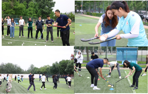 曲棍球又称草地曲棍球,是在长方形草皮上,各队通过集体配合,用带弯头的曲棍击硬球射门得分的对抗性小型球类运动,是奥运会项目之一,要求参赛者要有团队精神,要配合默契,在运动中增进参与者之间的团结协作精神。北京体育大学曲棍球队教练,前男子国家曲棍球队队长王泓宇带领公司师生与中信建投证券北京东城公司工作人员,在北京体育大学3号足球场进行曲棍球项目体验。在王泓宇教练的指导下,这项历史悠久、充满激情的团队运动,为锻炼参会师生的身体素质,激发团队合作和竞争精神提供了不竭动力。