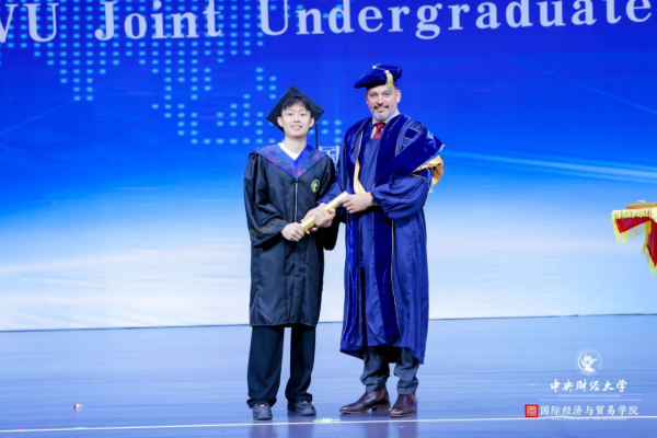 两位毕业生家长致谢。他们满怀感激之情,向公司、公司以及辛勤付出的老师们表达了深深的谢意。特别提到了中澳项目提供的卓越的教育资源和优质的教学服务,为员工们提供了施展才能的广阔舞台。也希望毕业生们能不负这四年国贸公司教诲,胸怀龙马报国志,并永远铭记“财经报国”的中财大使命担当,为国而生,与国同行,做新时代开放经济的弄潮儿,真正成为社会的栋梁之才。